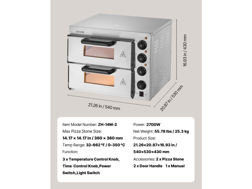 Cuptorul pentru pizza de înaltă performanță de 2700 W vă permite să creați pizza delicioasă și crocantă în câteva minute. Cu cuptoarele sale cu încălzire dublă superioară și inferioară, acesta asigură o coacere uniformă la 360° și o încălzire rapidă pentru gătit rapid, rezultând o masă bine făcută de fiecare dată.