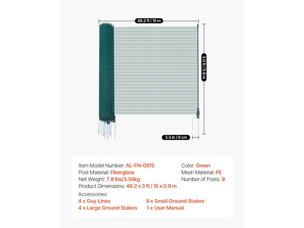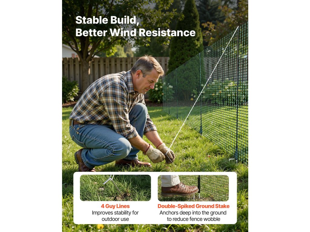Gardul din plastic VEVOR cu grilă și stâlpi vă va ajuta să creați rapid o incintă temporară sigură pentru grădini, curți și cotețe de pui. Este fabricat din plasă PE durabilă și include stâlpi din fibră de sticlă, țăruși pentru sol și frânghii de tensionare, asigurând o structură de sprijin stabilă și de lungă durată.