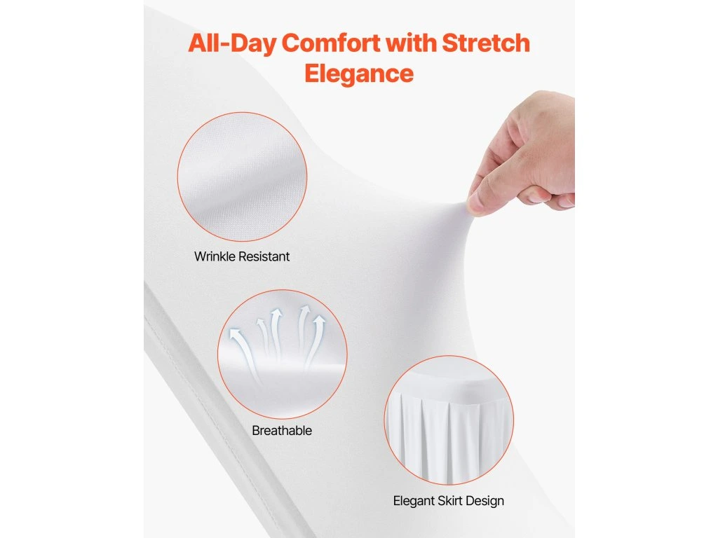 Acest set elegant de huse pentru scaune de banchet, fabricat din țesătură spandex stretch de înaltă calitate, va îmbunătăți aspectul uniform al scaunelor dvs. Este perfect pentru nunți, absolviri, zile de naștere și alte ocazii speciale și va adăuga o notă de sofisticare și stil la orice eveniment.