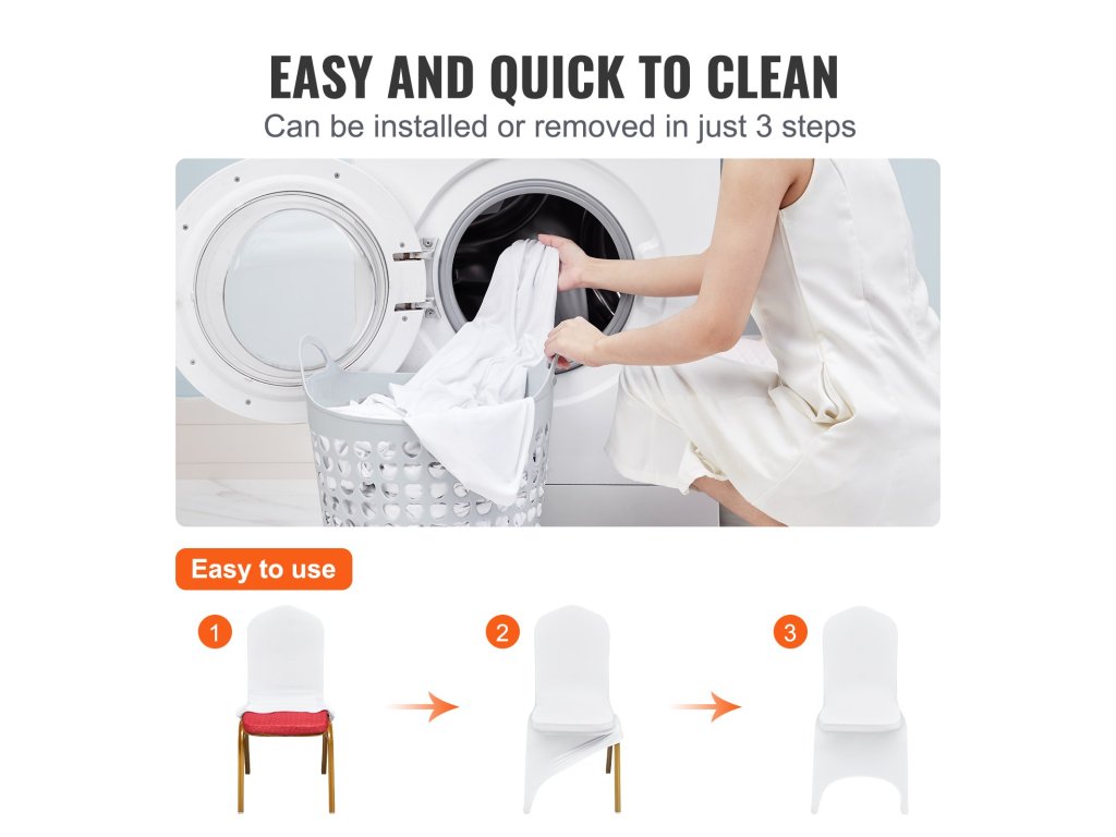 Huse pliabile pentru scaune din spandex, lavabile, 100 buc., albe