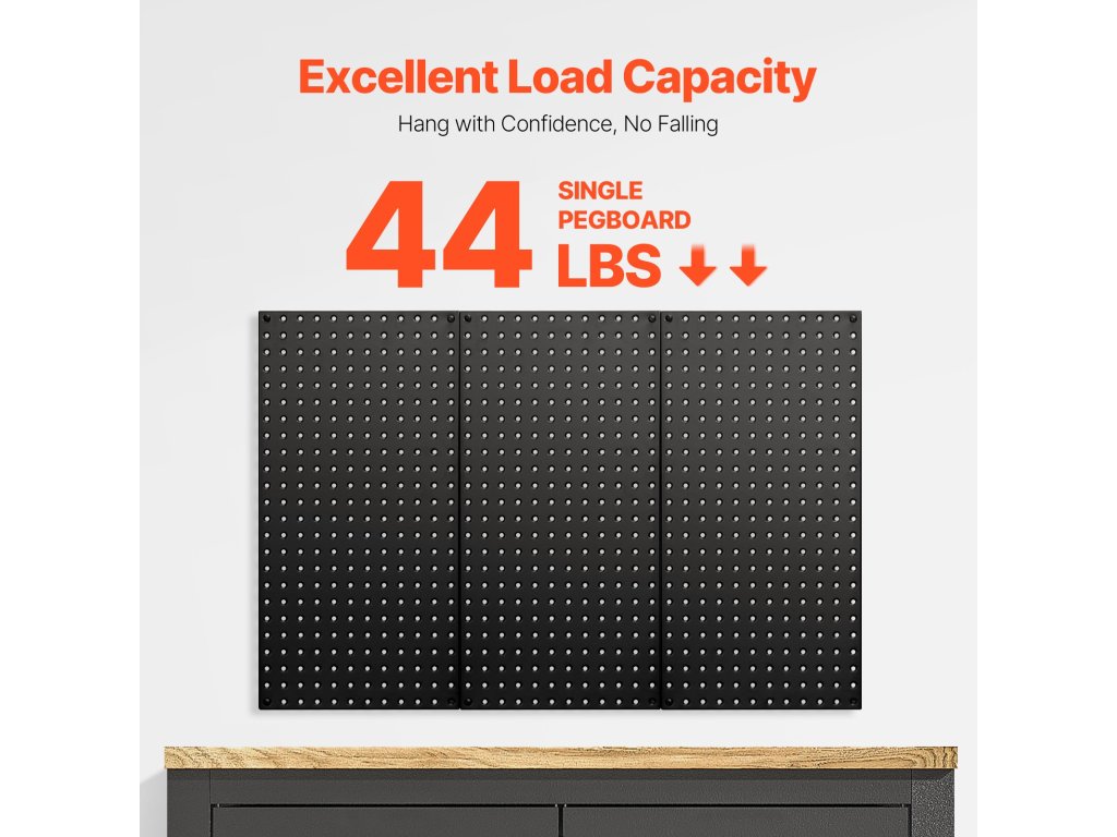 Placa metalică pentru pini are mult spațiu, permițându-vă să o asociați cu o varietate de cârlige, suporturi și tăvi pentru piese. Fie că este vorba de unelte mari sau piese mici, veți găsi cu ușurință locul perfect pentru toate.
