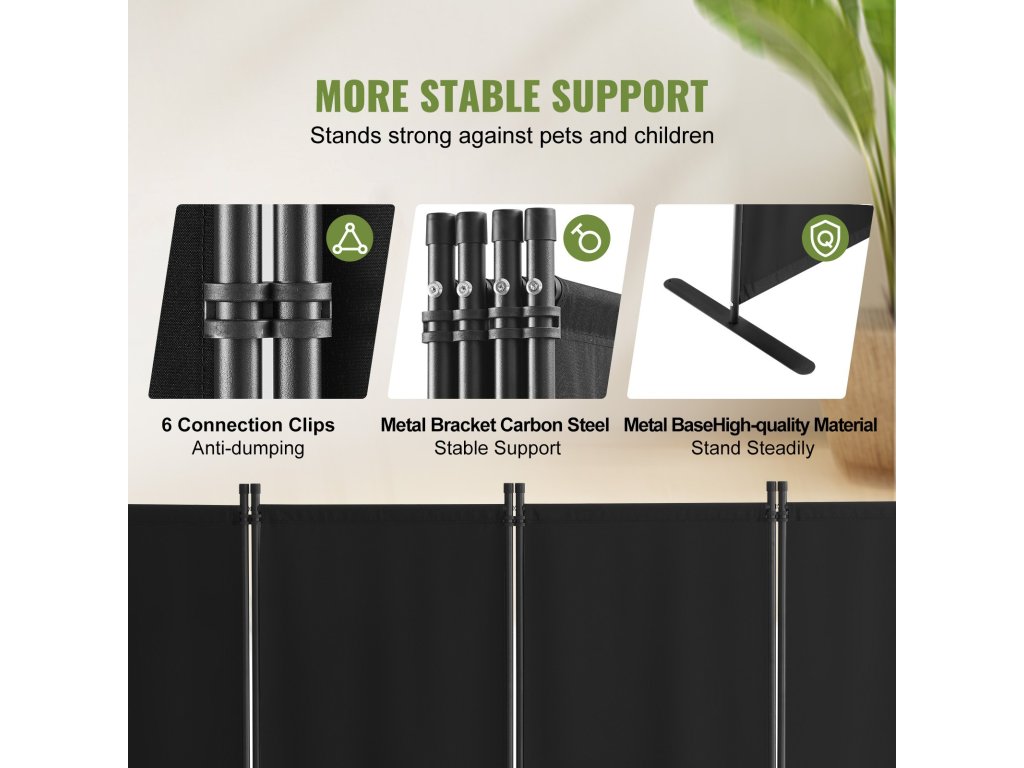 Separatorul nostru de cameră vine cu 9 catarame de conectare și un suport de bază metalic care îl face foarte stabil. Nu se va răsturna ușor, chiar dacă aveți animale de companie sau copii în apropiere.