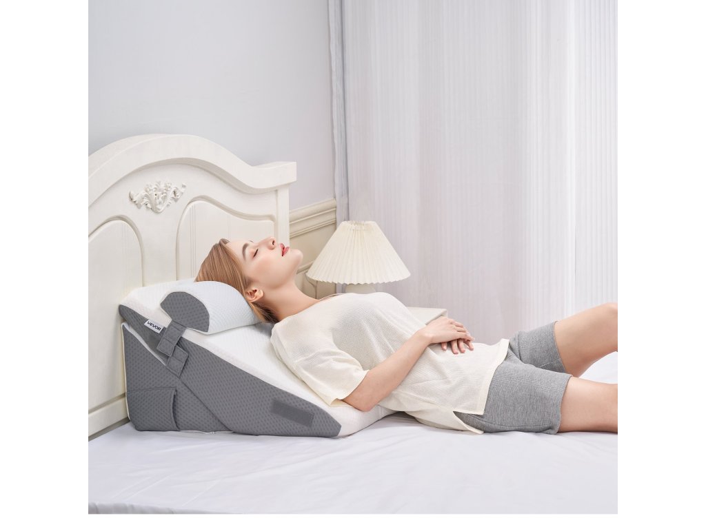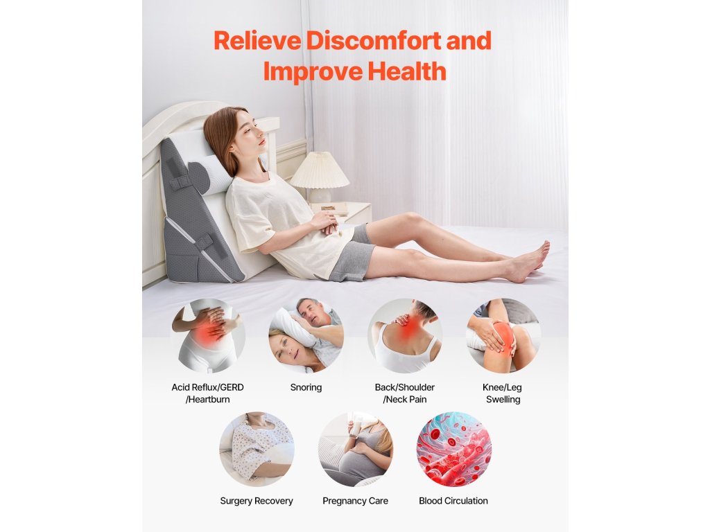 Designul unghiular al acestei perne chirurgicale de somn ajută la ameliorarea sforăitului, a refluxului acid, a durerilor de spate, a umflării picioarelor și a altor probleme, promovând un somn mai rapid și reducând disconfortul fizic.