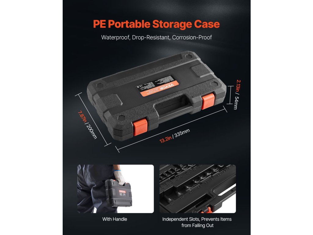 Nu vă mai faceți griji cu privire la căderile accidentale sau uneltele împrăștiate. Cutia de depozitare rezistentă din PE are găuri sigure pentru fiecare mufă de biți pentru a le menține ferm în poziție și a preveni pierderea sau deteriorarea. Designul său compact asigură transportul ușor și depozitarea convenabilă acasă sau în deplasare.