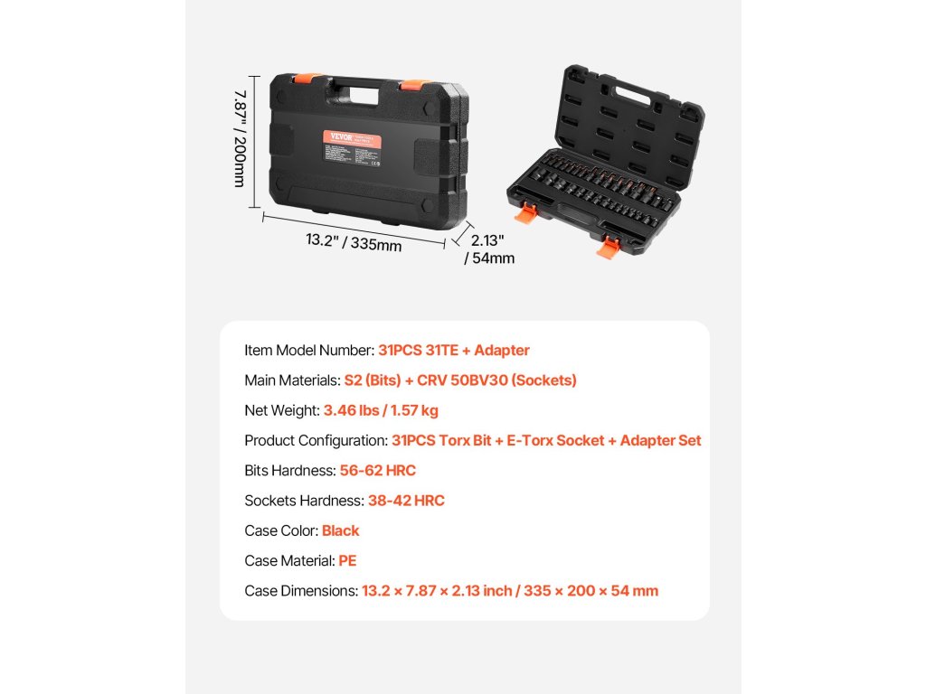 | Configurația produsului | 31 biți Torx + soclu E-Torx + set adaptor |